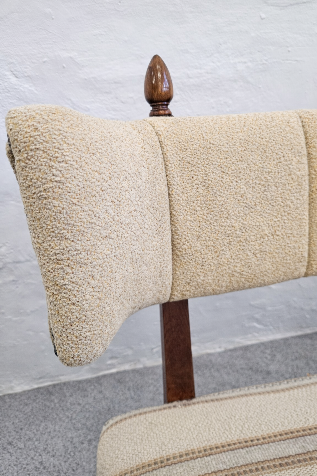 Hungarian (Art Deco period) Transitional Lounge Chair in Solid Oak, Minotti Tapestry & Belgian Bouclé Upholstery, Late 1930s