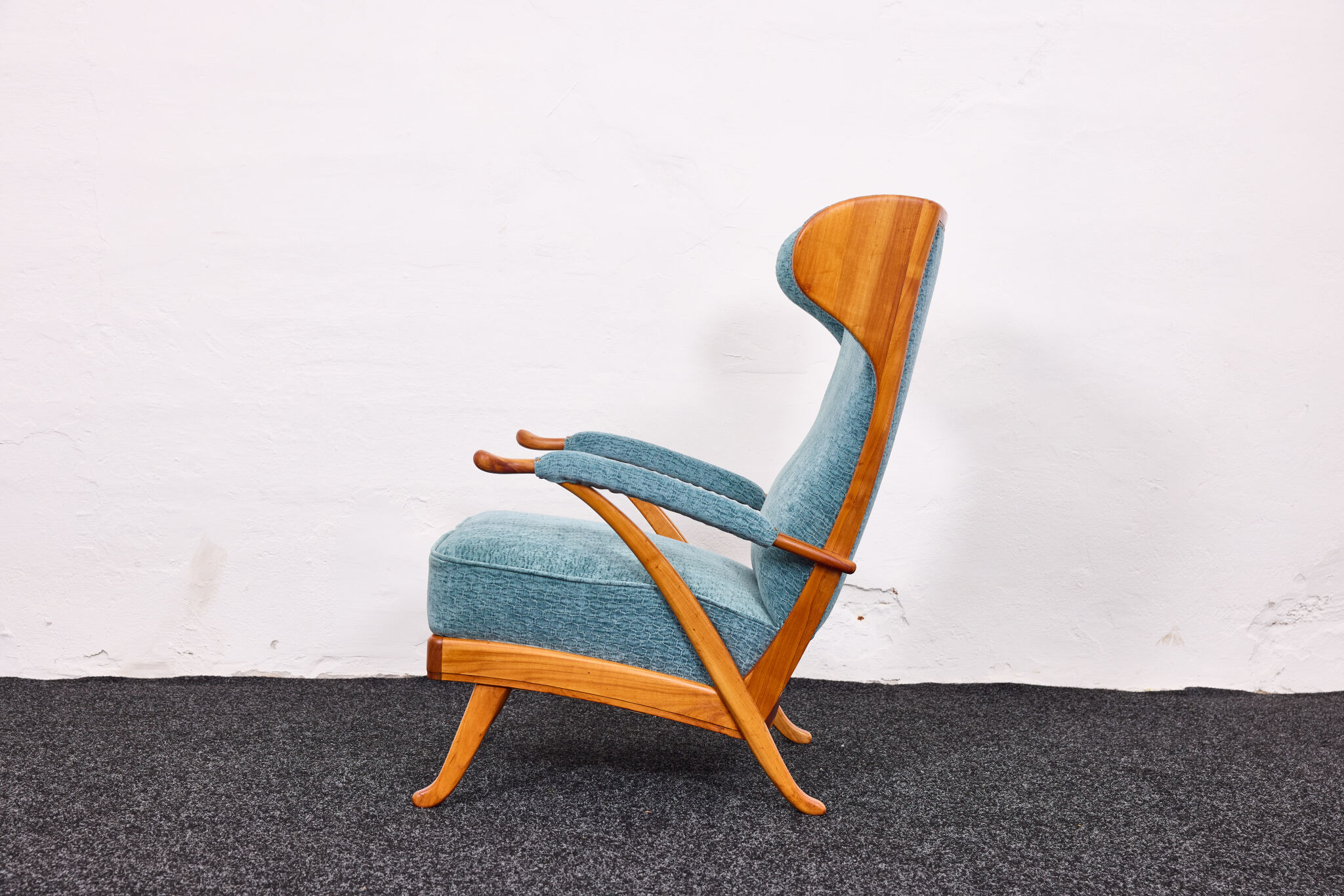 A true design statement, this piece is one of the most beautiful and distinctive wingback chairs of the mid-20th century—perfect for collectors and design enthusiasts alike.