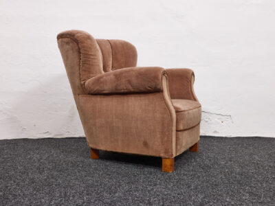 Fritz Hansen, Vintage Lounge Chair model-1518 in Sand Beige Mohair Velvet 1940s, Denmark