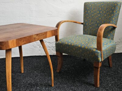 Halabala “Spider” Coffee Table and Hungarian Late Art Deco Armchairs, 1950s