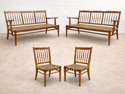 Dining Bench and Armchair Set, Kozma Lajos Vienna–Budapest Modernism, c. 1930 – Documented