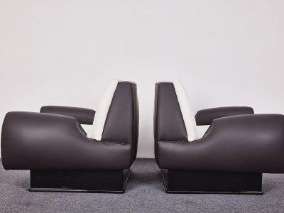 Lajos Kozma, important Art Deco-Bauhaus Black walnut armchairs for Budapest Werkstatten, 1930s