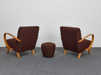 Art Deco Lounge Set by Jindřich Halabala – Fully Restored H-530 Armchairs and H-230 Tabouret, 1940s